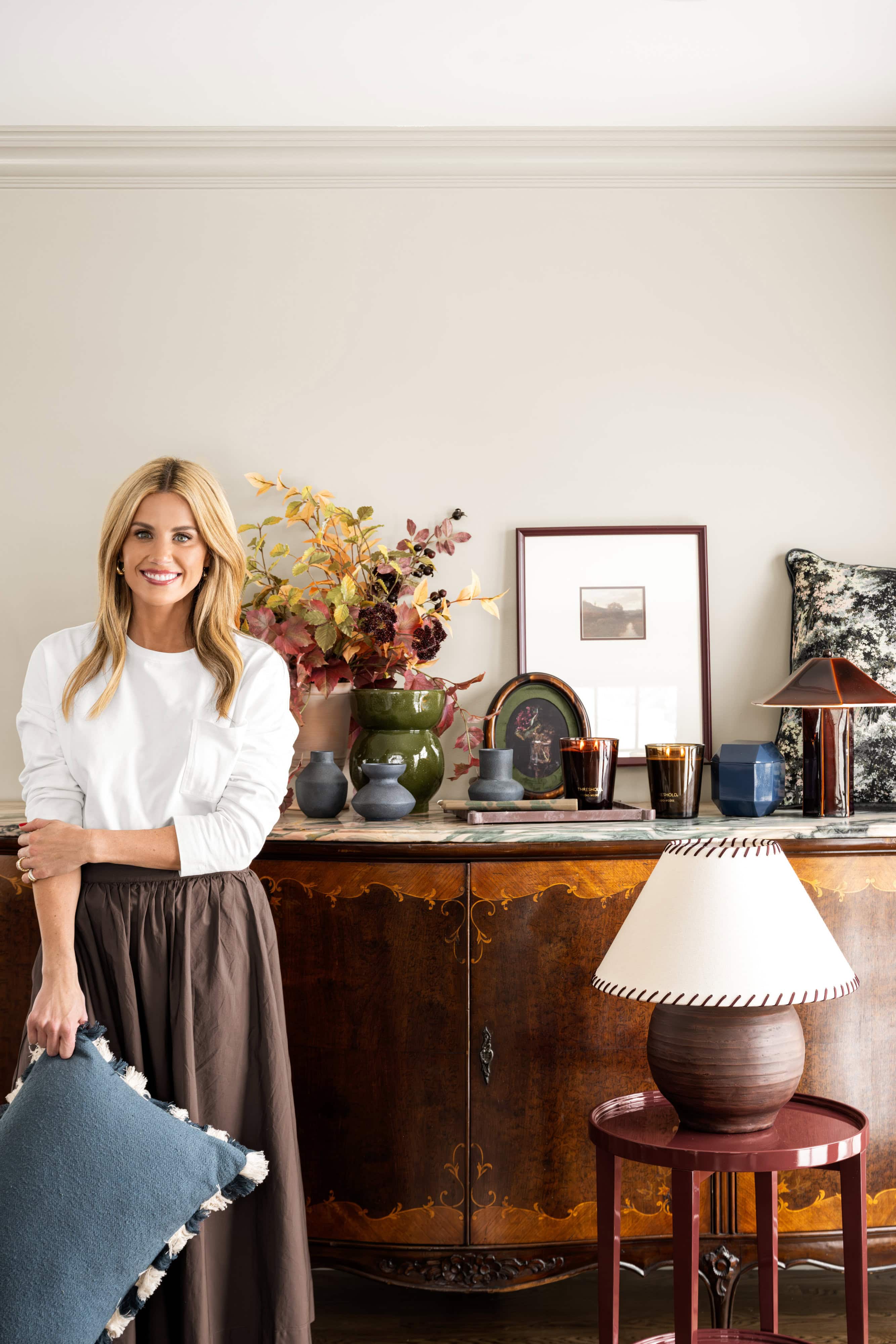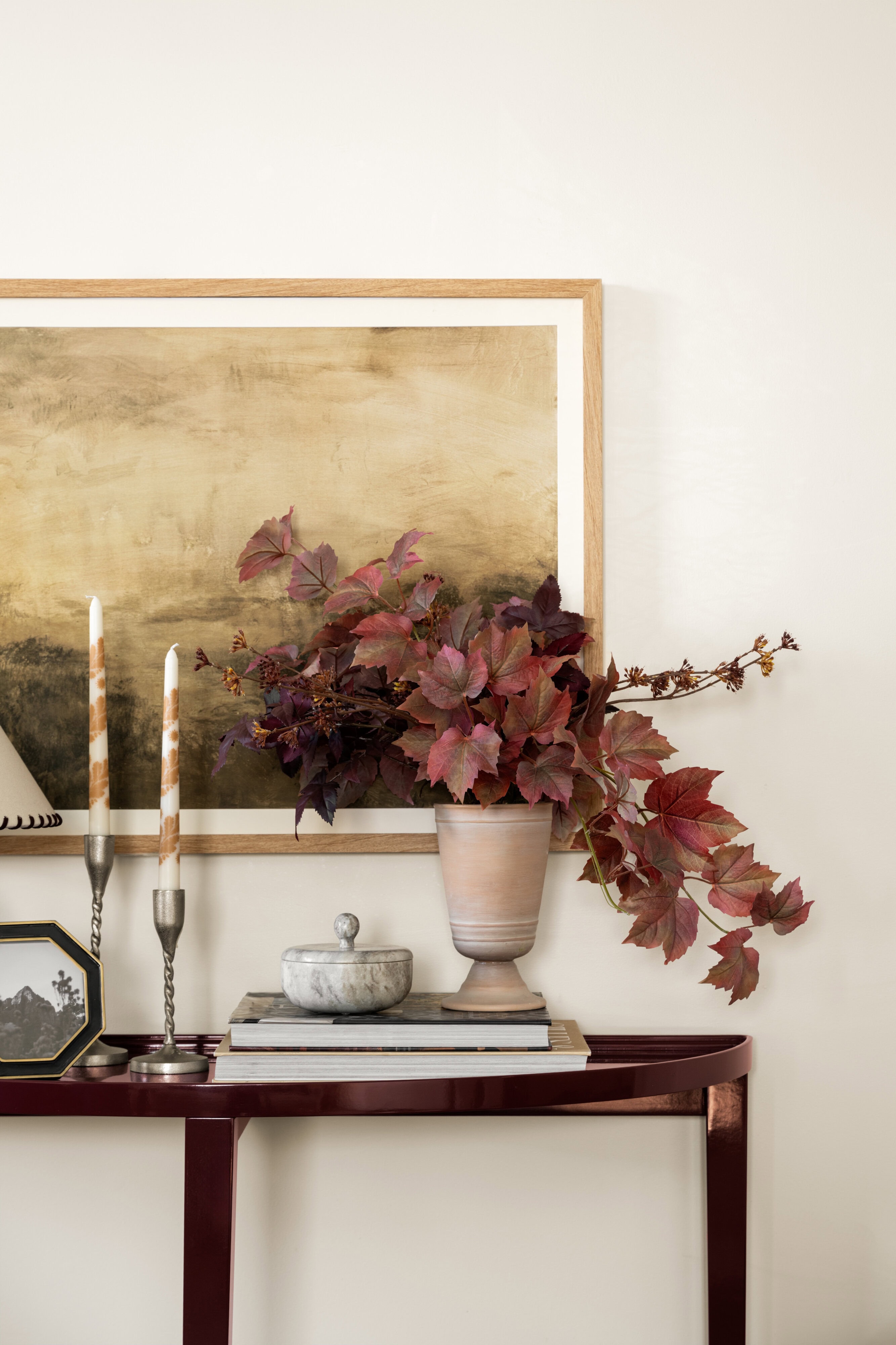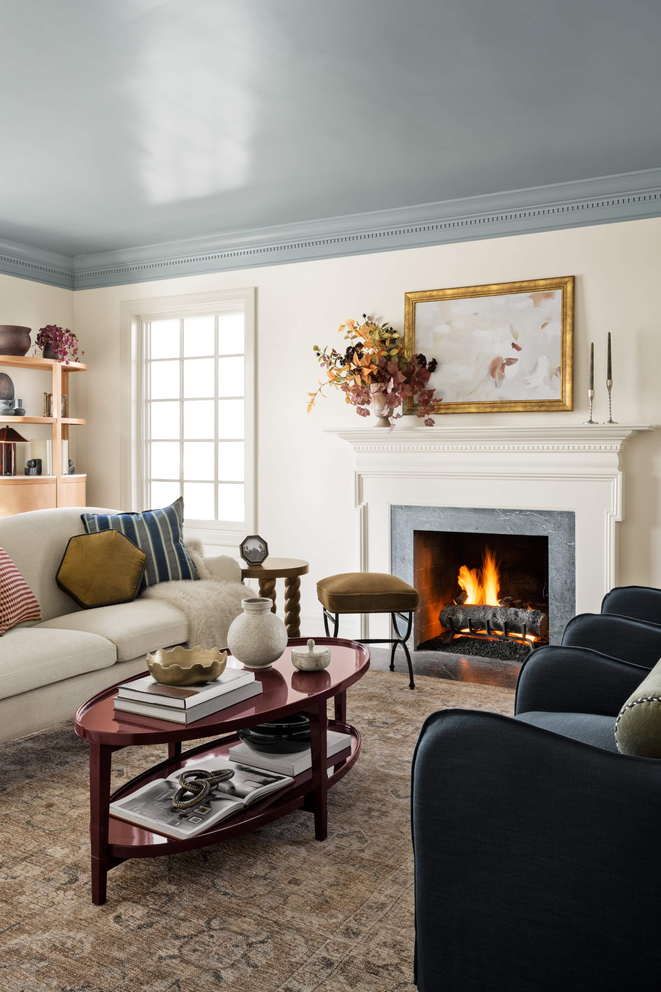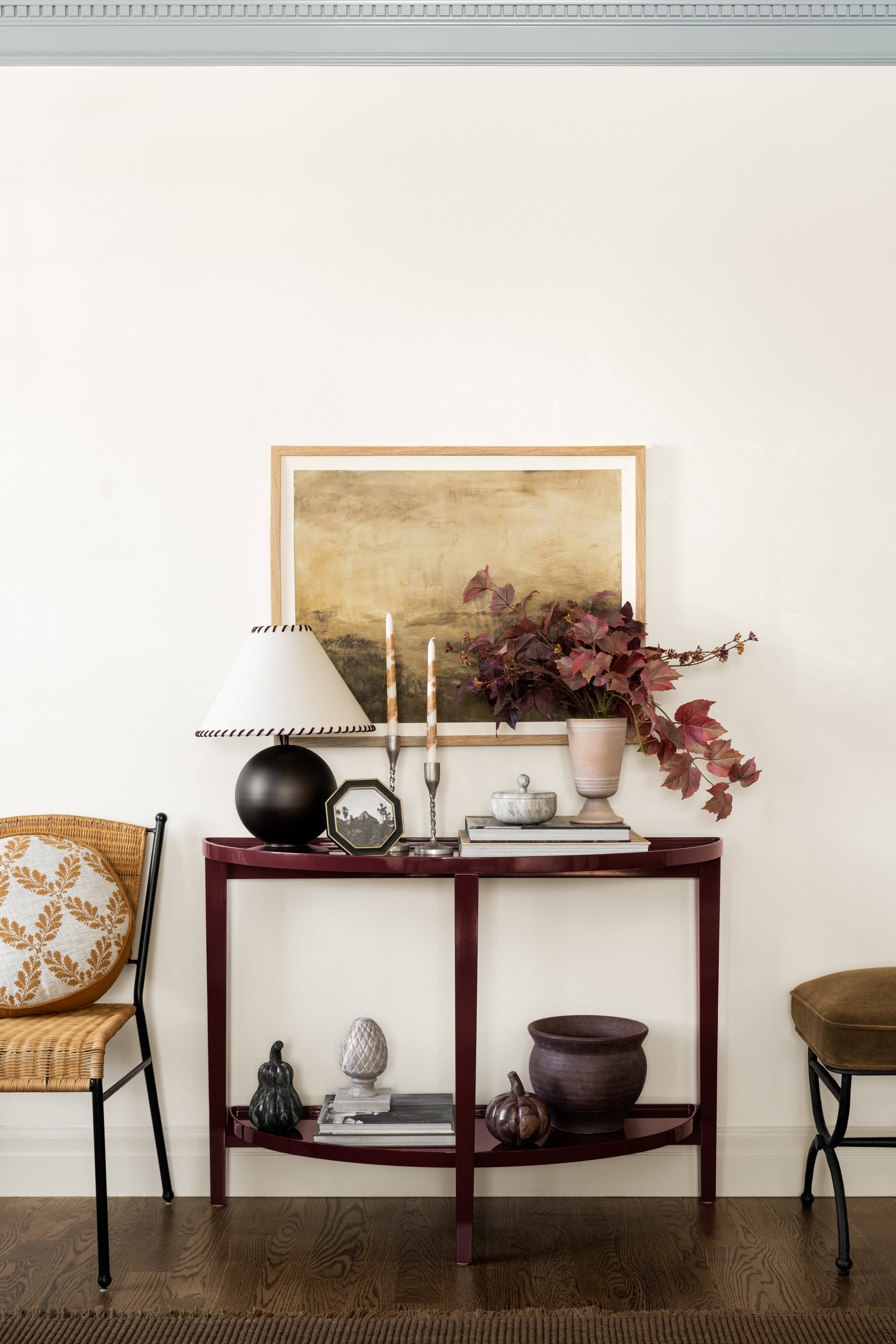 Our latest Threshold x Studio McGee collection at Target features several standout pieces that nod to the lacquered look. Each piece is finished in a deep oxblood hue that feels more like a refined statement than a trend-driven accent. The coffee table grounds a living room with its sculptural oval shape. The console table adds drama and polish to an entryway or behind a sofa. And the side table is a versatile punctuation mark in any room, offering just the right hit of shine.