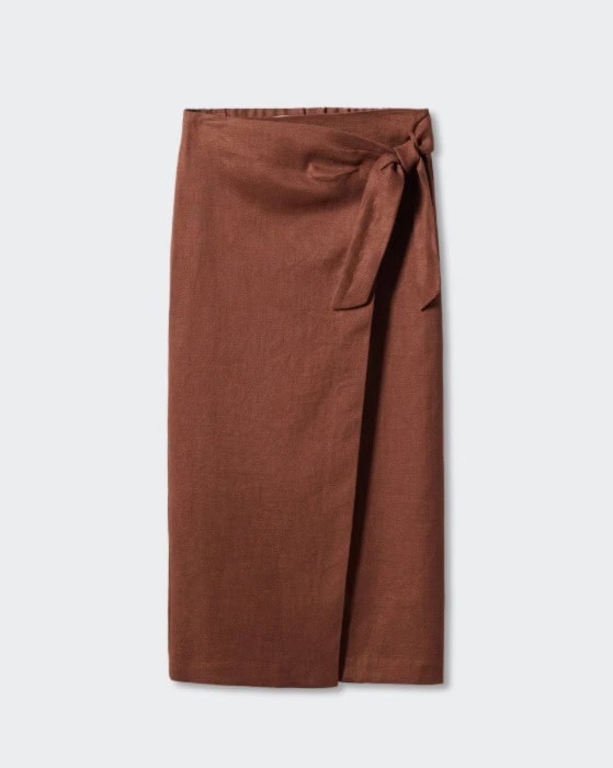 Linen-blend wrap skirt