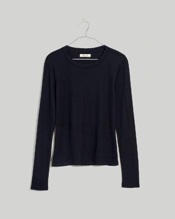 Fine Ribbed Crewneck Long-Sleeve Tee